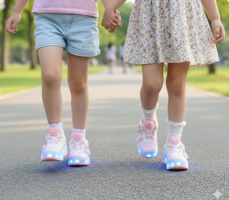 کفش اسکیتی چراغ دار دخترانه کرومی خارجی